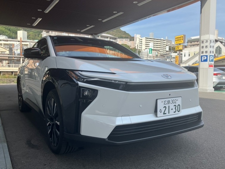 現在bZ4Xの試乗車は、井口店、広島支店、東広島支店、福山支店に配置しています