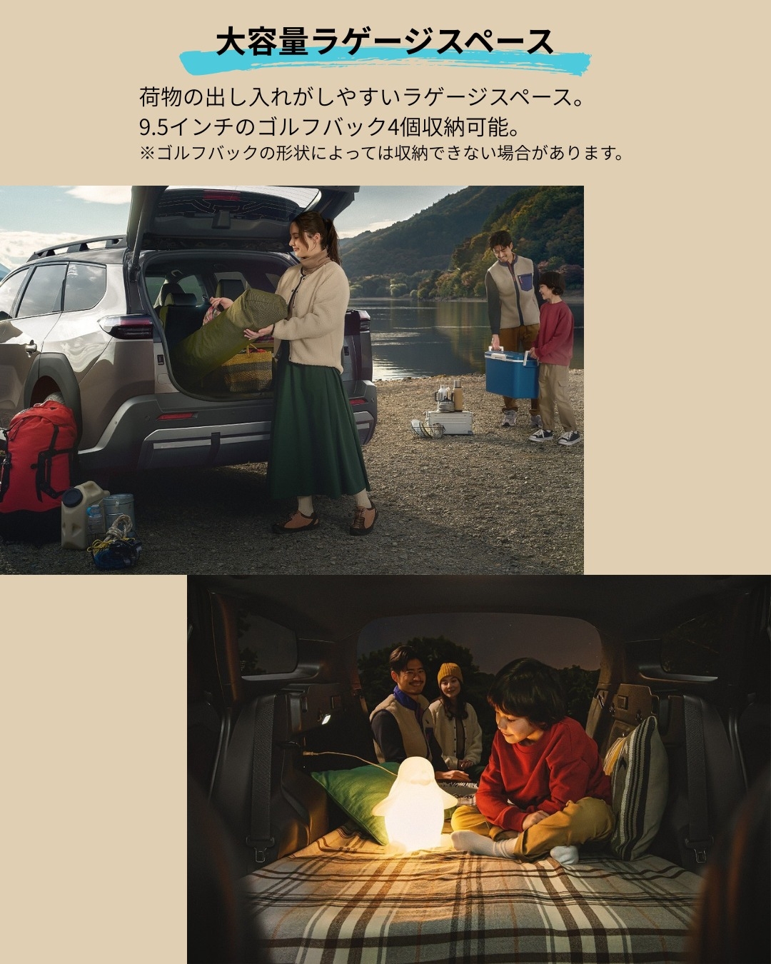 bZ4X Touringは、bZ4Xに比べ約1.4倍もの大容量ラゲージスペースを確保